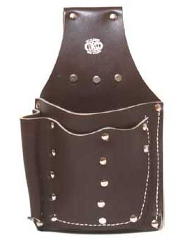 Tool pouch CAB heavy duty top grain leather main pocket containing 5 tool slots, flared triple outside pocket, 2.5″ wide tunnel belt loop. Plastic backing and rivet reinforced to give greater strength and rigidity.